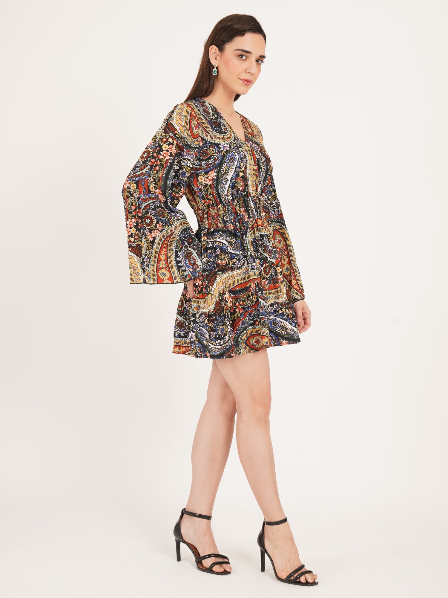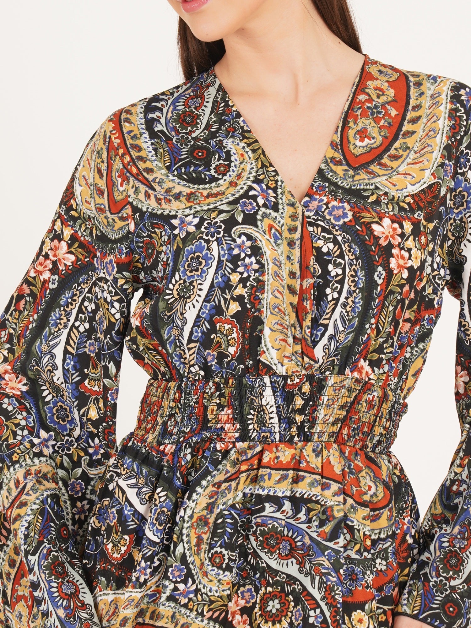 This chic mini dress blends rich black and maroon tones to create a striking, stylish look. The smocked detailing offers a comfortable, body-flattering fit, while the V-neckline adds a touch of elegance and femininity. Designed for ease and movement, it feels light and effortless for all-day wear. Perfect for casual outings, date nights, or weekend plans, it pairs beautifully with sandals, heels, or boots for a versatile, polished finish.