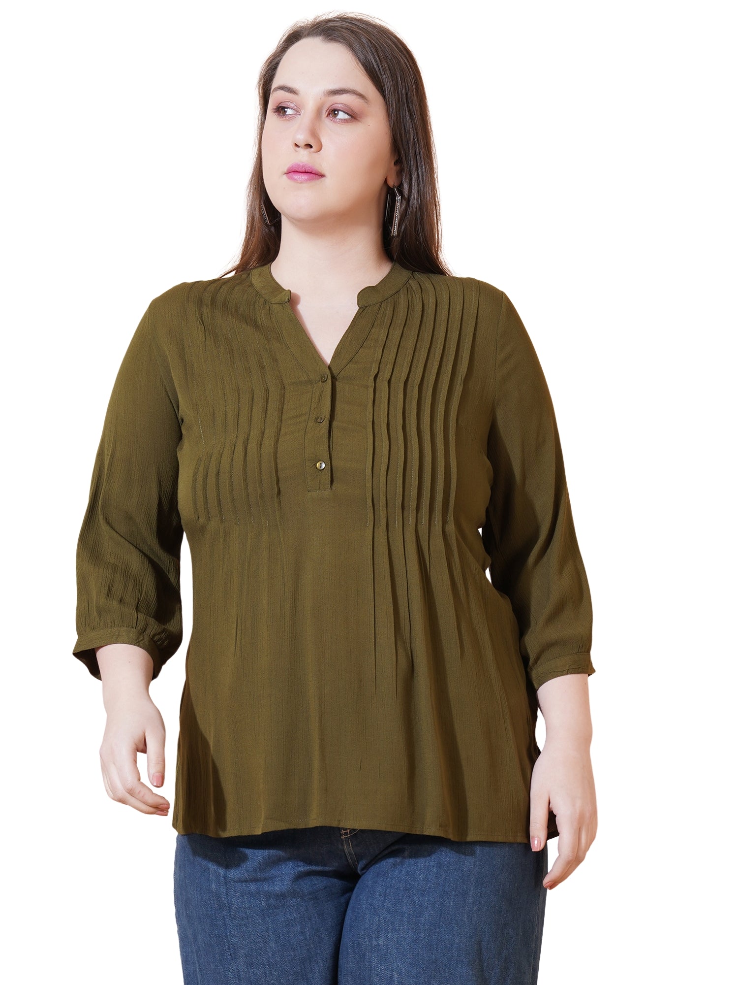 This chic and versatile plus-size top in a rich brown shade is perfect for those who love a classic, minimalist style. The solid brown color gives it a timeless appeal, while the pintuck detailing along the front adds a touch of texture and sophistication. Designed for comfort and style, this top is ideal for both casual and semi-formal occasions, offering a flattering fit for all body types.