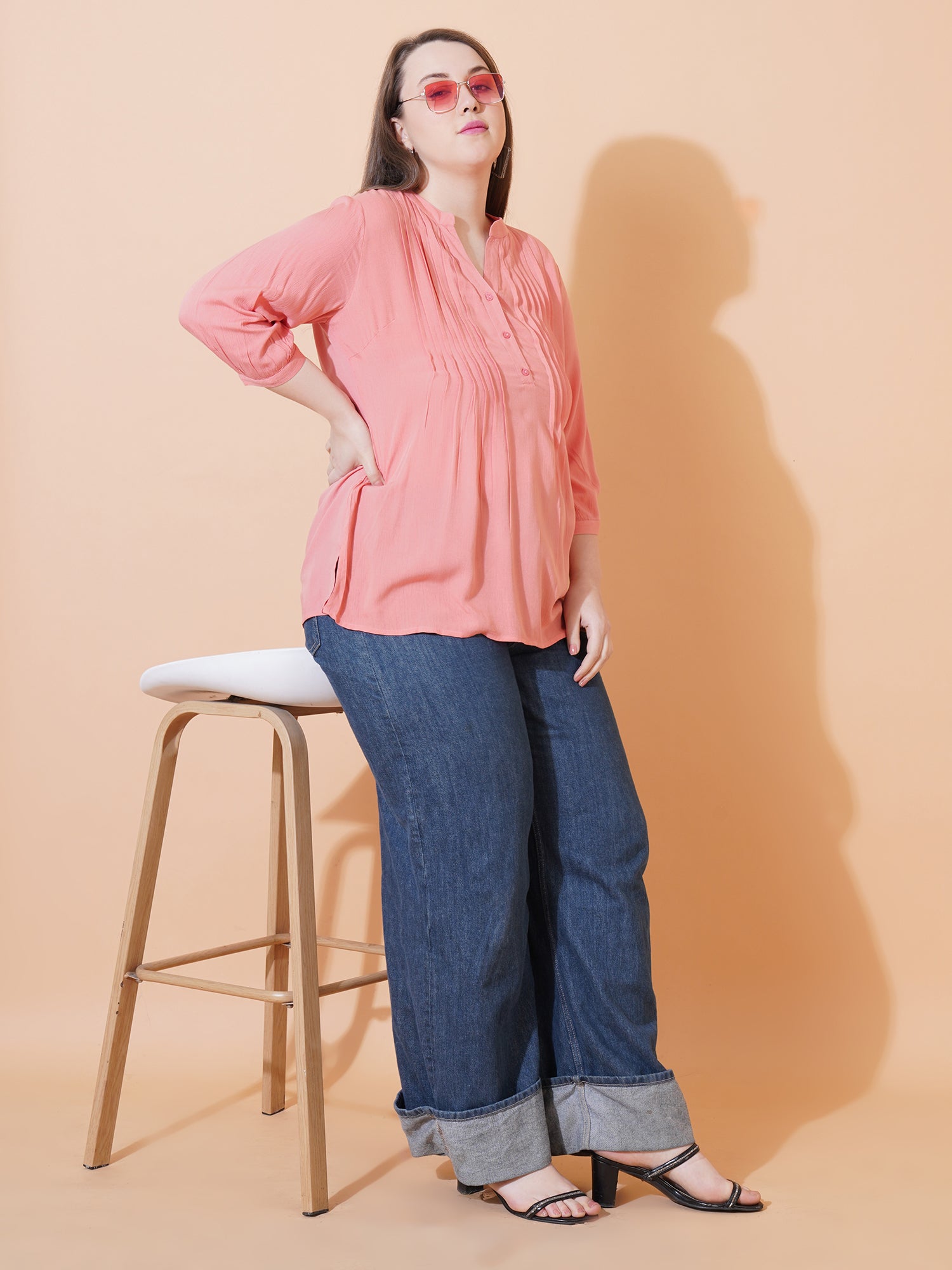 Add a pop of color to your wardrobe with this vibrant pink solid pintuck plus-size top. Designed for comfort and style, this top features delicate pintuck detailing along the front that adds texture and elegance to the simple, solid pink fabric. Whether you're dressing up for a casual outing or a semi-formal event, this top offers a flattering and feminine fit for all body types.