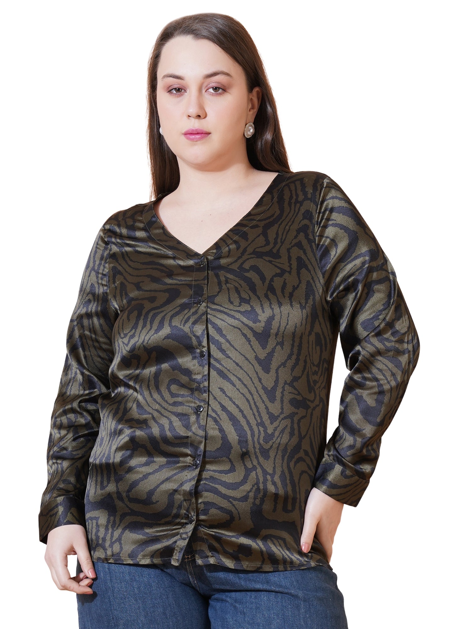 Make a bold statement with this striking green animal print top, designed to bring a touch of wild elegance to your wardrobe. Featuring a full sleeve design, this top combines comfort and style in one. The animal print pattern in green hues adds a unique and trendy vibe, making it perfect for both casual and semi-formal occasions.