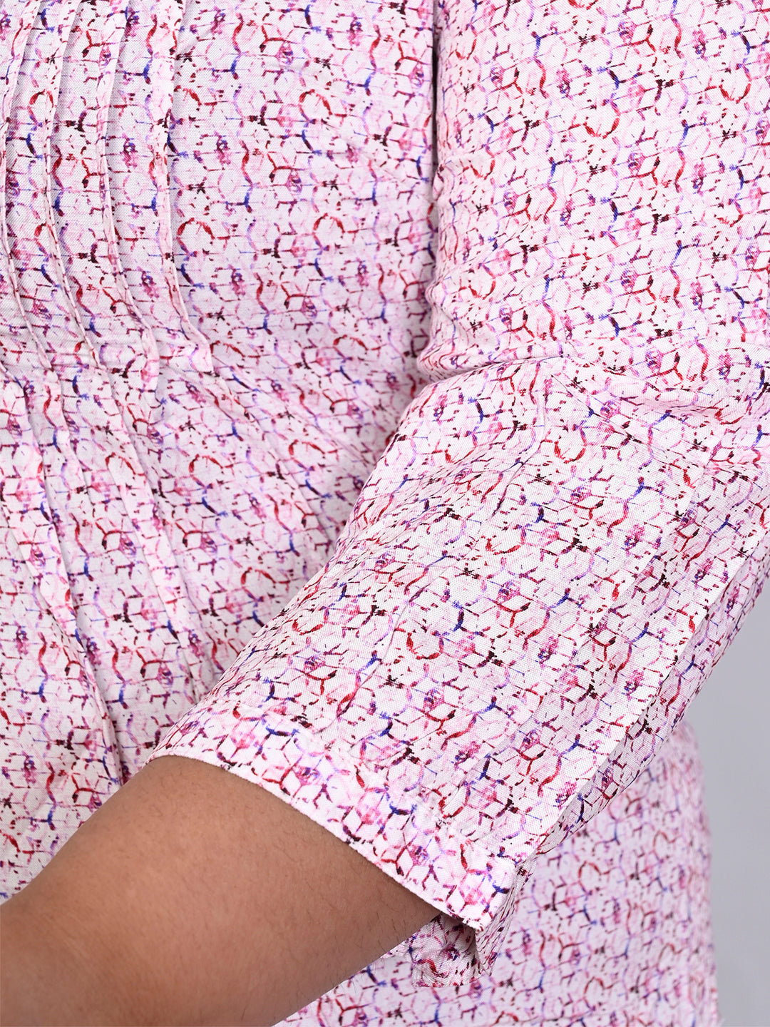 9 Impression Women Pink Printed Pintuck Mandarin Collar Plus Size Top