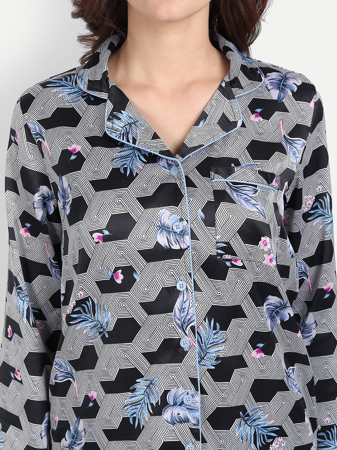 The Arlune Oceana Set captures the serene elegance of the ocean with its striking combination of black, blue, and white satin. The set includes a sleek black satin shirt, paired with a soft blue satin accent and white pyjama bottoms for a harmonious, sophisticated contrast. Crafted from high-quality satin, this set promises a luxurious feel, offering comfort without compromising on style. The Arlune Oceana Set is perfect for those who appreciate refined beauty with a dash of modern vibrancy, ideal for both sleep and stylish lounging.