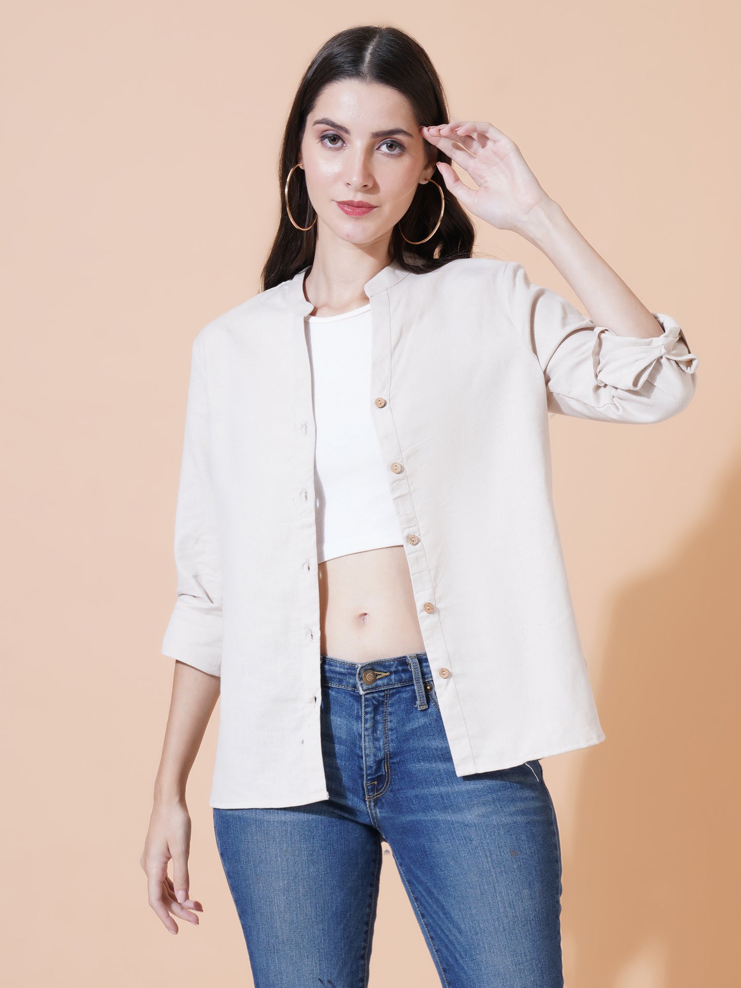 Timeless, effortless, and undeniably chic—The Beige Aura Shirt is the perfect blend of comfort and sophistication. Crafted from premium breathable cotton flex fabric, this versatile button-down features a relaxed fit, wooden button detailing, and a minimalist design that elevates any outfit. Whether styled with jeans for a casual look or layered for a polished ensemble, this is the wardrobe essential you’ve been waiting for.