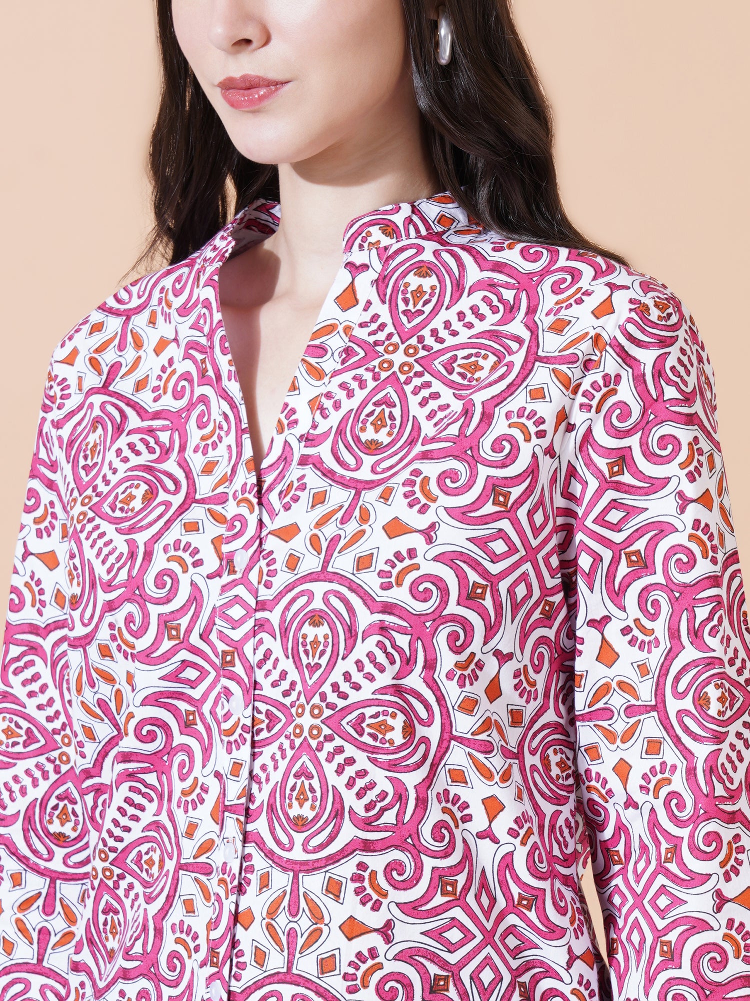 Crafted from airy, breathable cotton poplin, The Elaraine Shirt balances comfort with quiet sophistication. Its graceful print adds subtle character, while the tailored silhouette makes it effortlessly versatile — equally at home in a polished daytime look or an elevated casual ensemble. A timeless essential for the modern, discerning wardrobe.