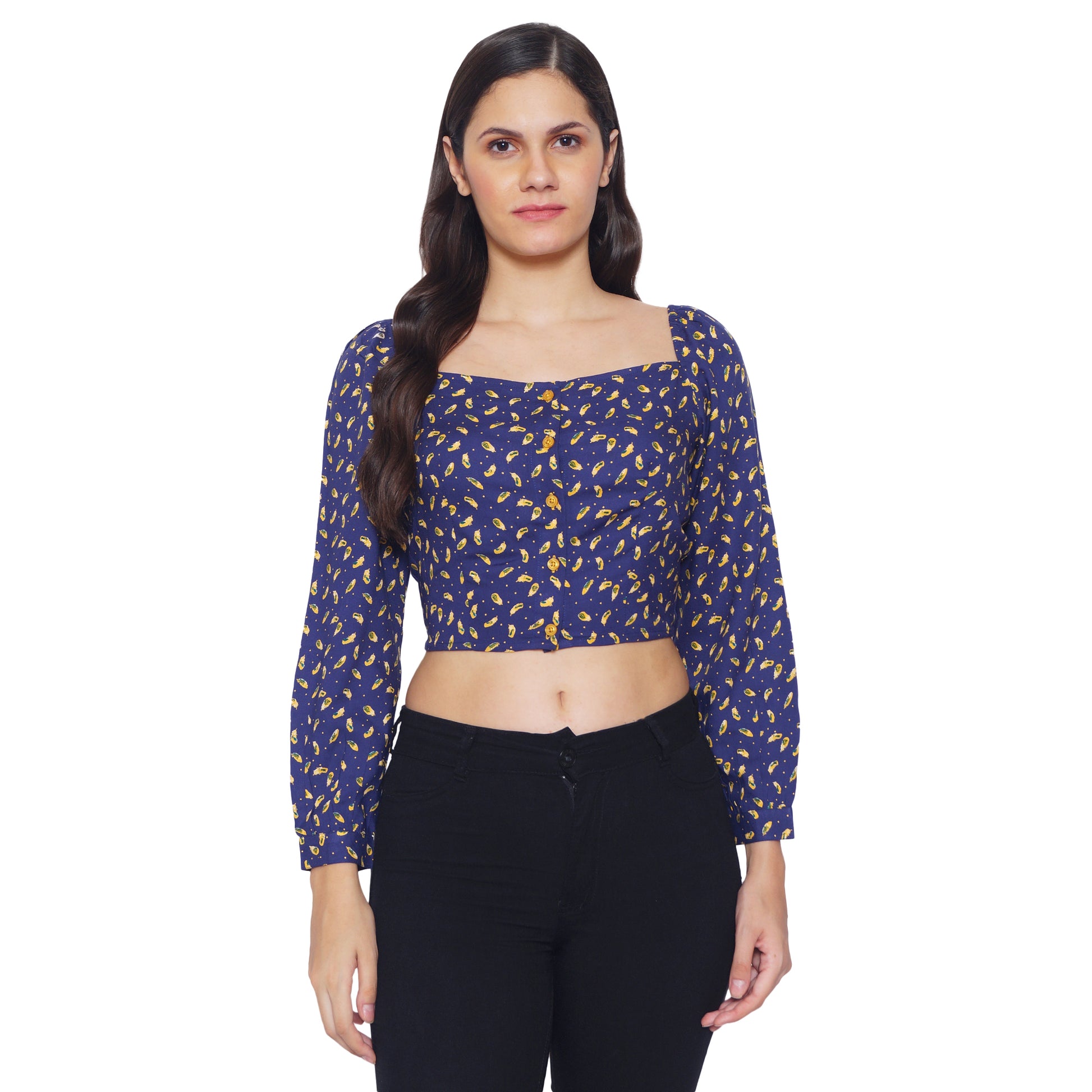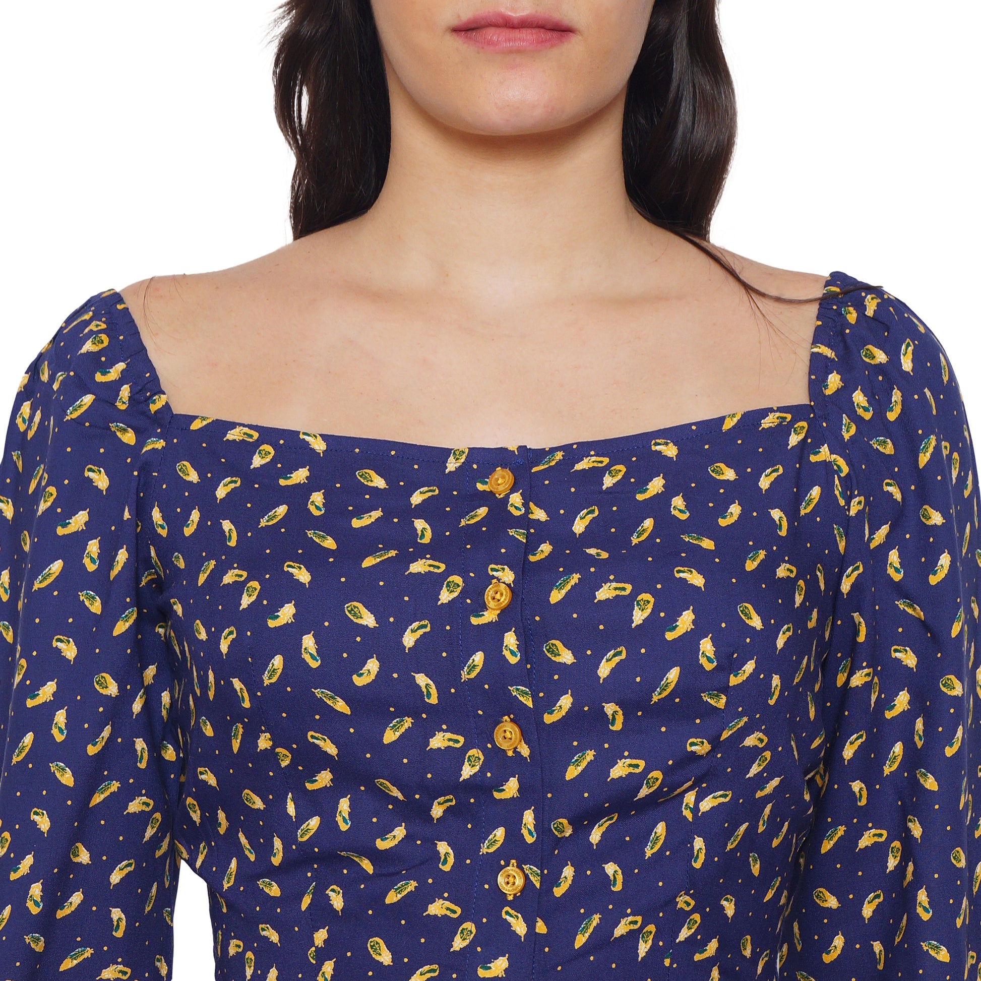 The Feather Top brings a fresh, dynamic twist to your wardrobe with its striking combination of navy blue and yellow feather print. This crop top effortlessly balances bold design with timeless elegance. Crafted from lightweight, breathable fabric, it offers both style and comfort for a variety of occasions, from casual outings to more polished events. The vibrant feather print creates a sense of movement and energy, while the crop length adds a modern touch, making it perfect for pairing with skirts, high-waisted jeans, or shorts.