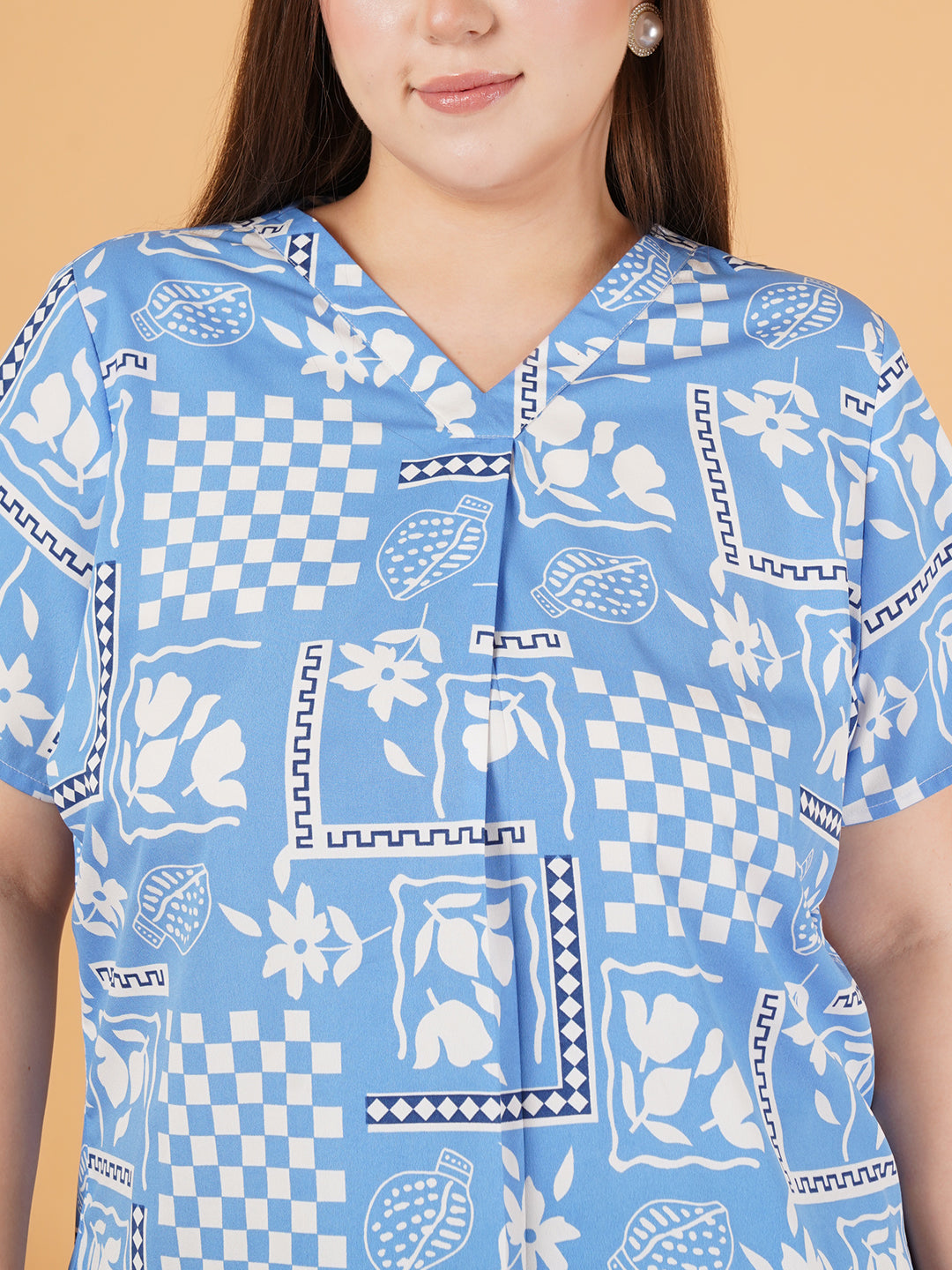 Expertly crafted for modern women, the Glaciera Top features a delicate light blue and white print with flutter sleeves and a flattering V-neck design. Made with high-quality materials, this top offers both comfort and style, making it perfect for any occasion. Elevate your wardrobe with this versatile and fashionable piece from 9 Impression.