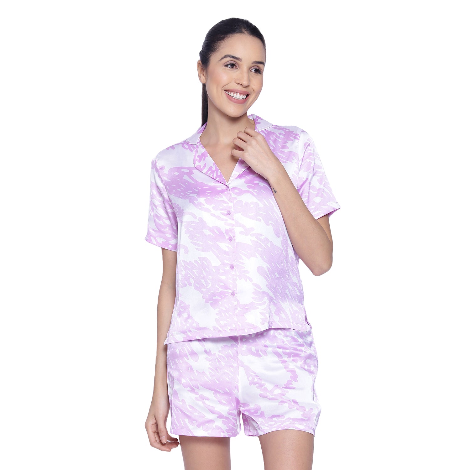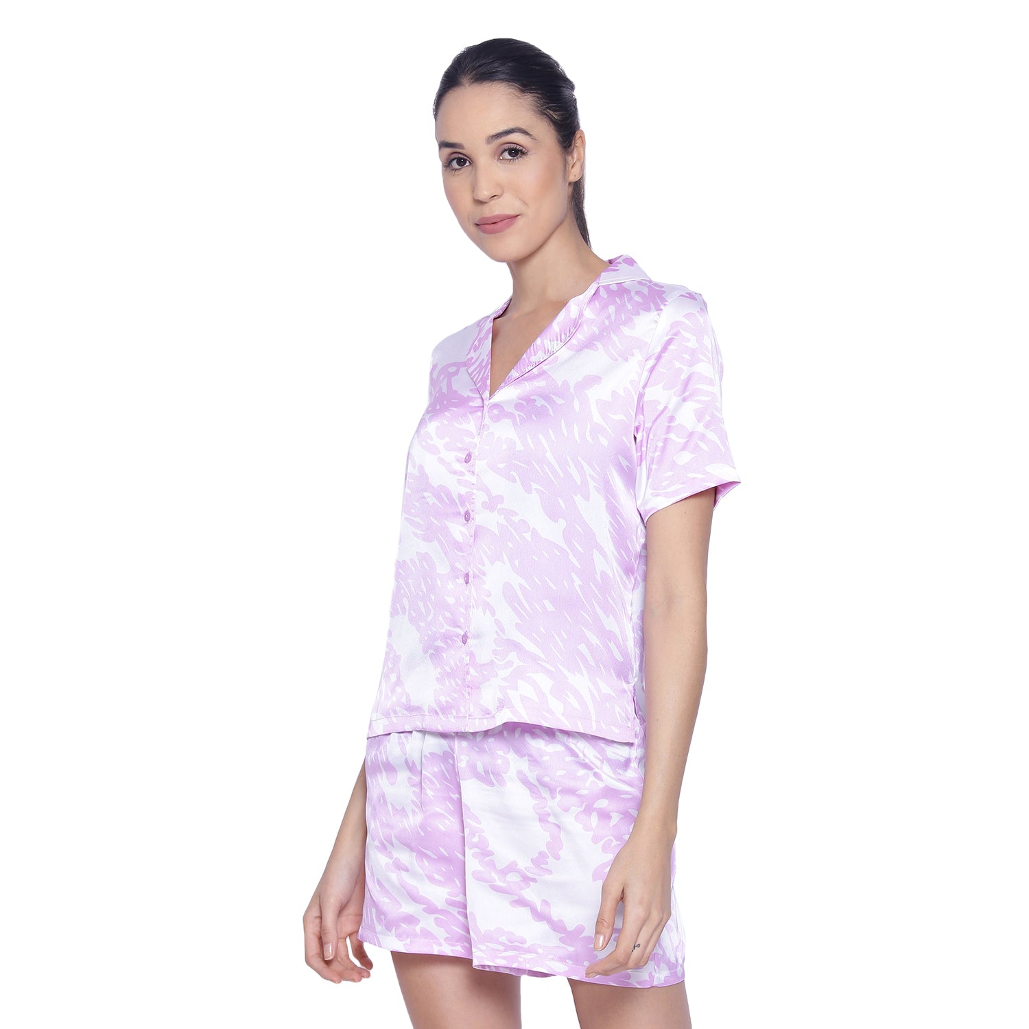 The Mirali Set captures the perfect blend of modern design and elegance with its abstract pink print on satin. This shorts and shirt set is designed for those who love luxury and style, offering a smooth and soft satin feel. The abstract pattern adds a playful yet sophisticated touch, making it the ideal choice for both relaxation and sleep. Embrace effortless elegance with The Mirali Set, a chic addition to your sleepwear collection.