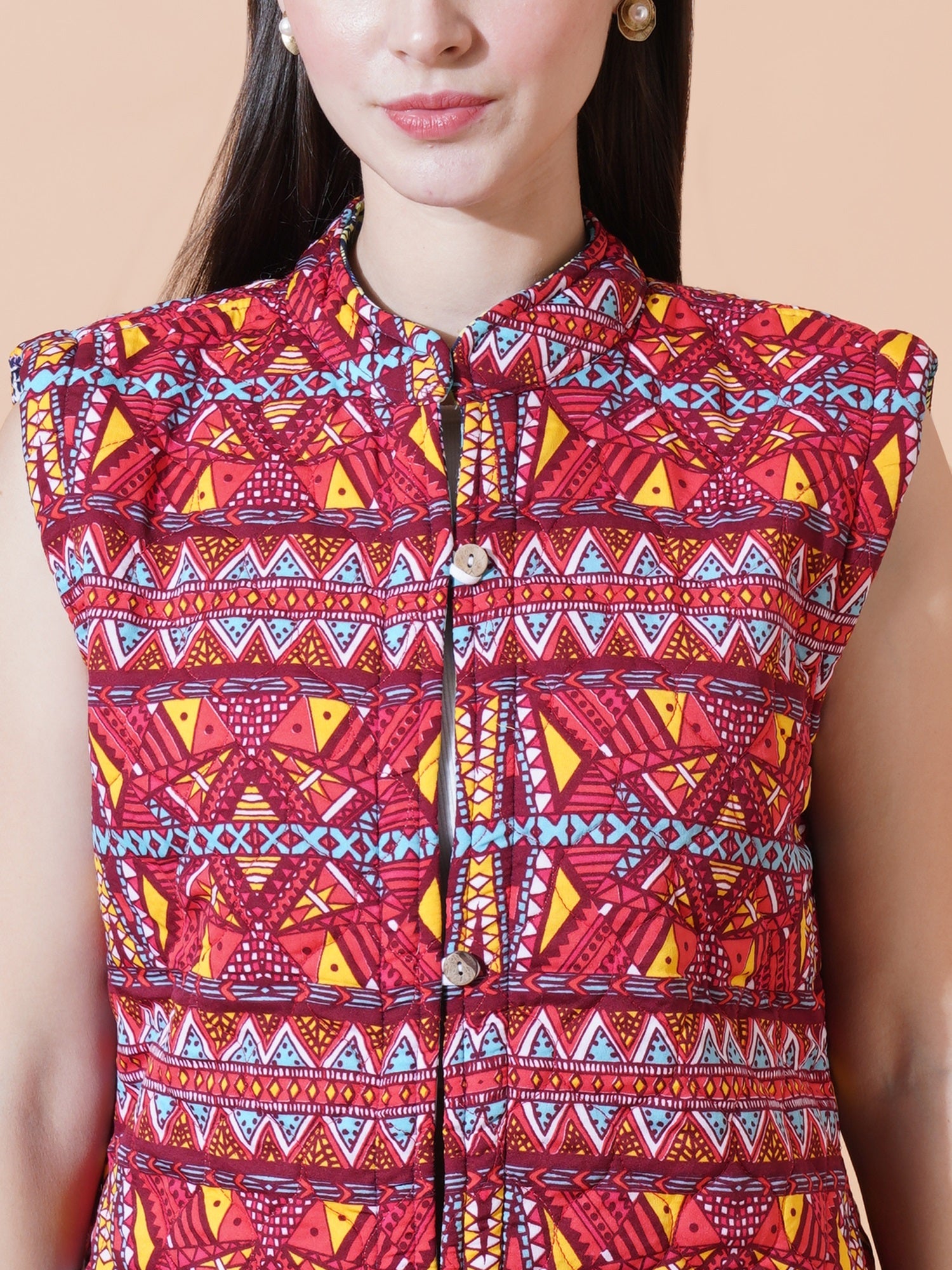 Defined by duality, The Miran Coat brings together heritage and modernity in a reversible design that offers effortless transformation. Tailored from high-quality polyester for a smooth, structured feel, it features a distinguished Nehru collar and a graceful maroon and navy blue print. Whether worn for quiet evenings or statement moments, The Miran elevates your wardrobe with refined versatility and enduring elegance.