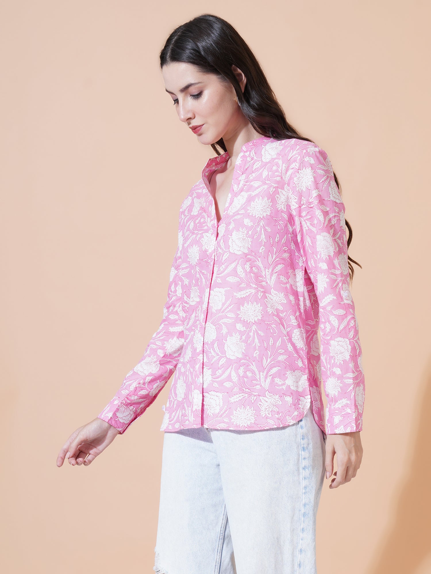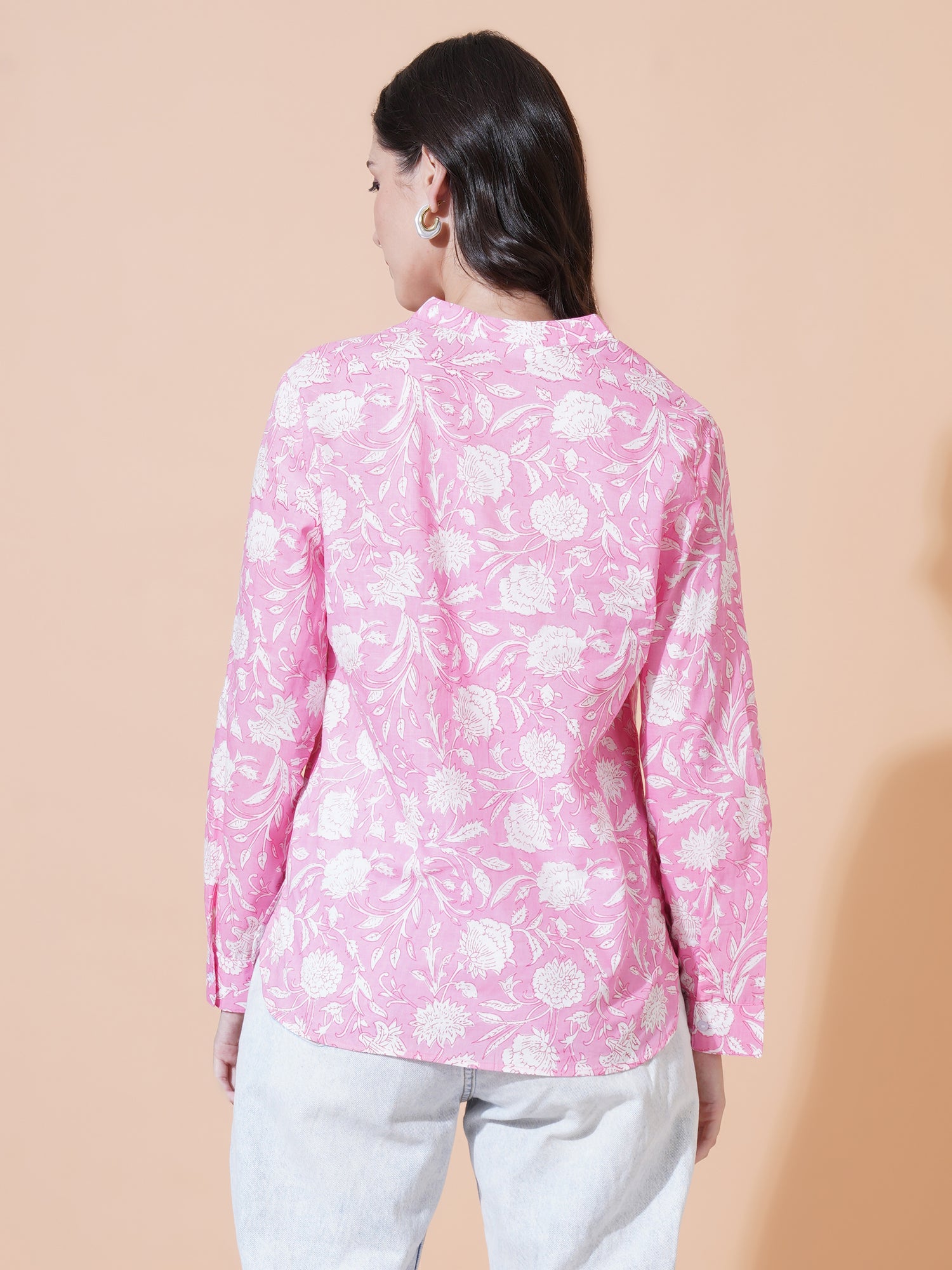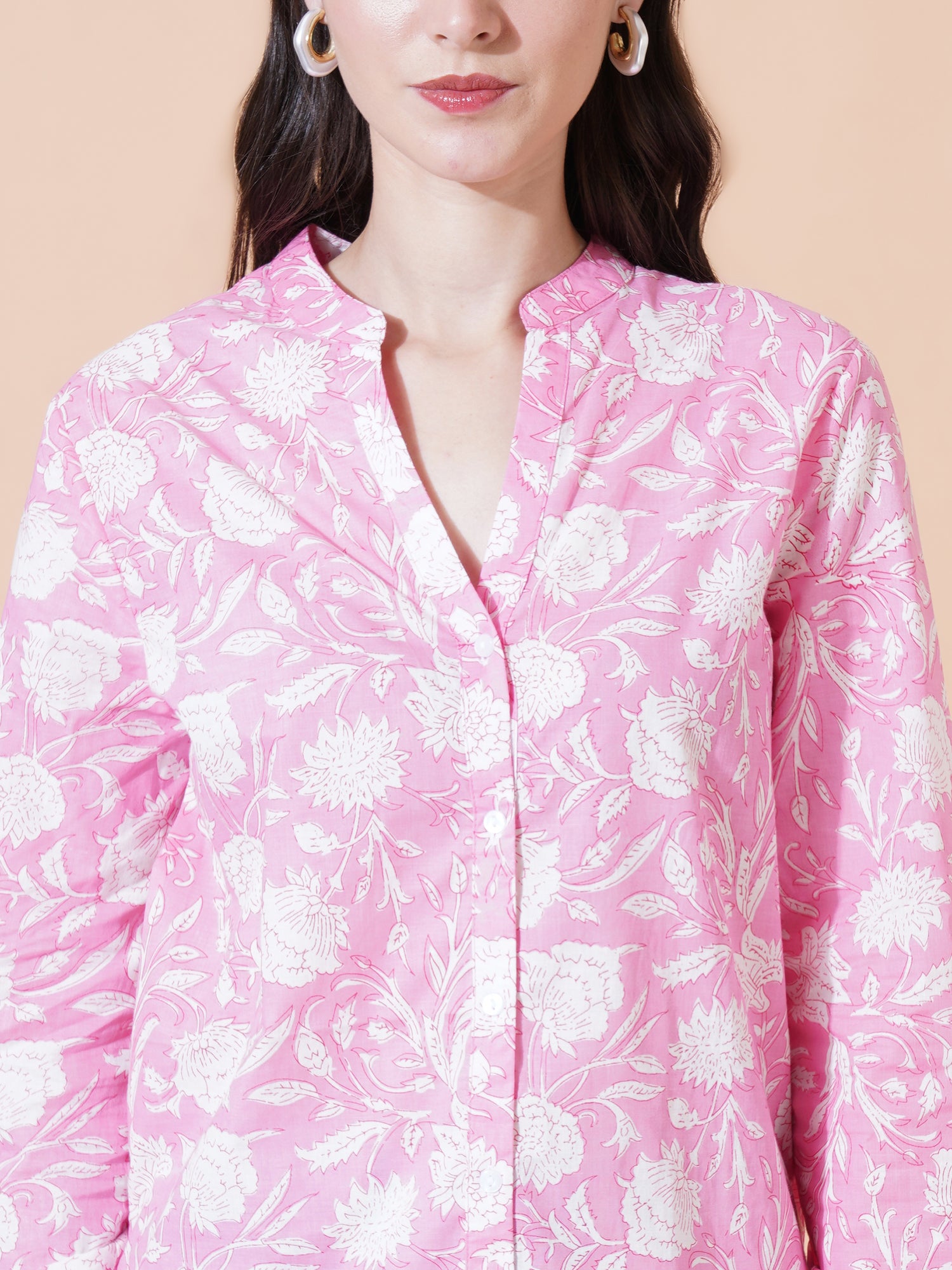 The Petalune Top brings soft elegance and everyday comfort together in perfect harmony. Crafted from breathable, high-quality cotton, this blouse features a gentle pink hue adorned with a delicate floral print — evoking the calm beauty of petals under moonlight. With its relaxed silhouette and refined detailing, The Petalune Top is a graceful addition to your wardrobe, ideal for both casual charm and polished ease.