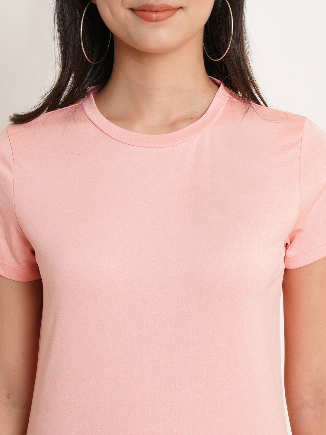 The Roselle T-Shirt in soft light pink blends athletic performance with subtle femininity. Crafted from breathable, moisture-wicking fabric, its tailored fit moves with you gracefully—perfect for active days or relaxed moments infused with quiet elegance.