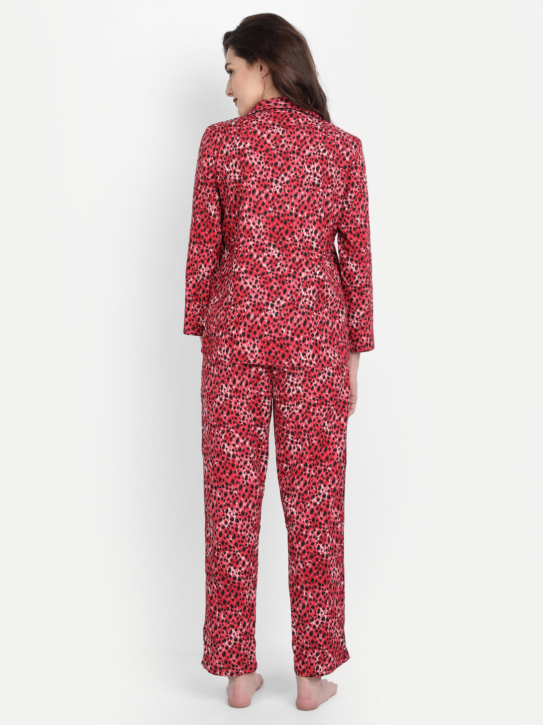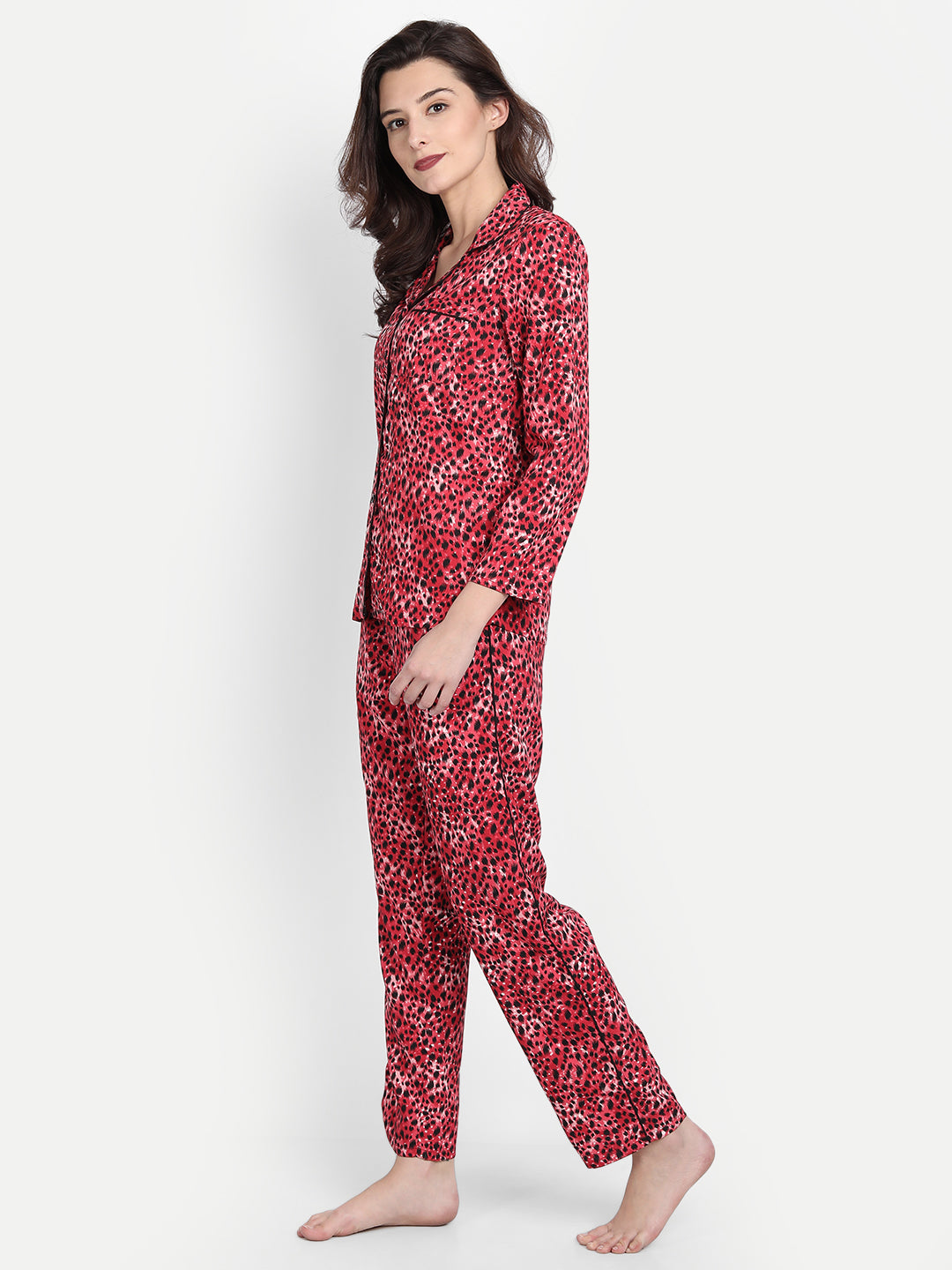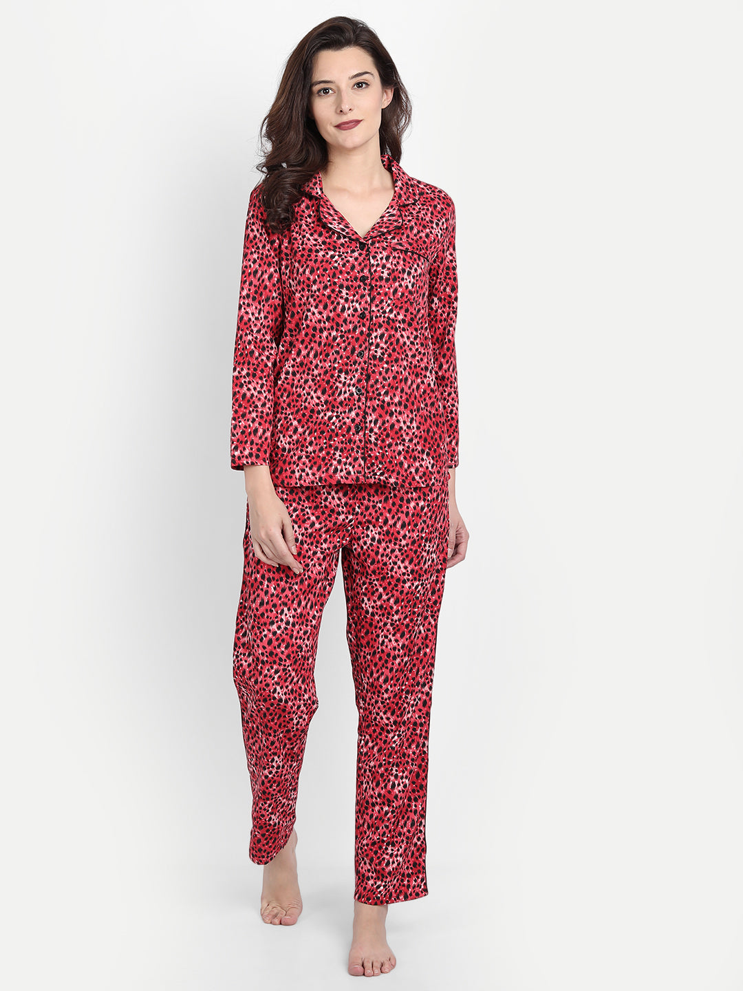 The Varnyx Set is a bold fusion of confidence and comfort — a nightwear ensemble designed to make a statement even in stillness. Featuring a striking black and red animal print, this shirt and pyjama set channels untamed elegance with every detail. Crafted from lightweight, breathable polyester, it offers a silky-smooth feel and effortless drape against the skin. Whether you're settling in for the evening or indulging in slow, stylish mornings, The Varnyx Set brings a sense of daring sophistication to your downtime.