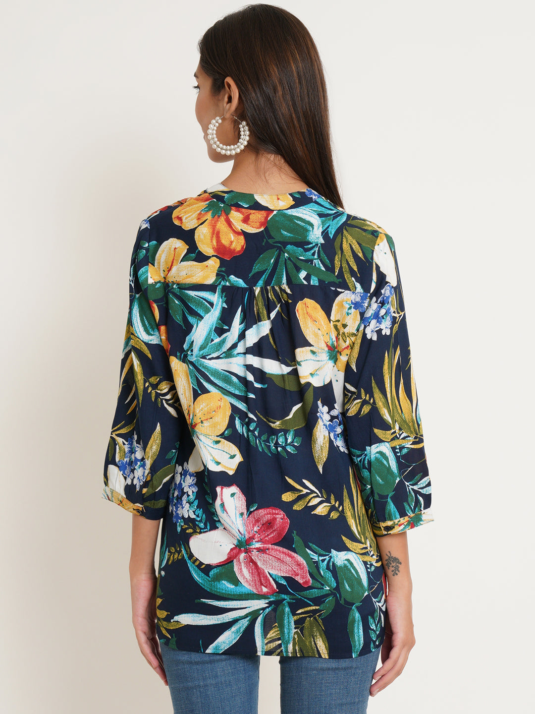 This elegant green and navy blue pintuck top is the epitome of refined style. Featuring a bold big floral print, it combines rich, nature-inspired hues with intricate pintuck detailing to create a flattering silhouette. The high-quality, breathable fabric ensures all-day comfort, while the timeless design transitions seamlessly from day to evening. Pair it with tailored trousers for a polished office look or with denim for effortless weekend chic. Easy to care for and designed to flatter every body type, the Verdelune Top is a statement of elegance and versatility in one.
