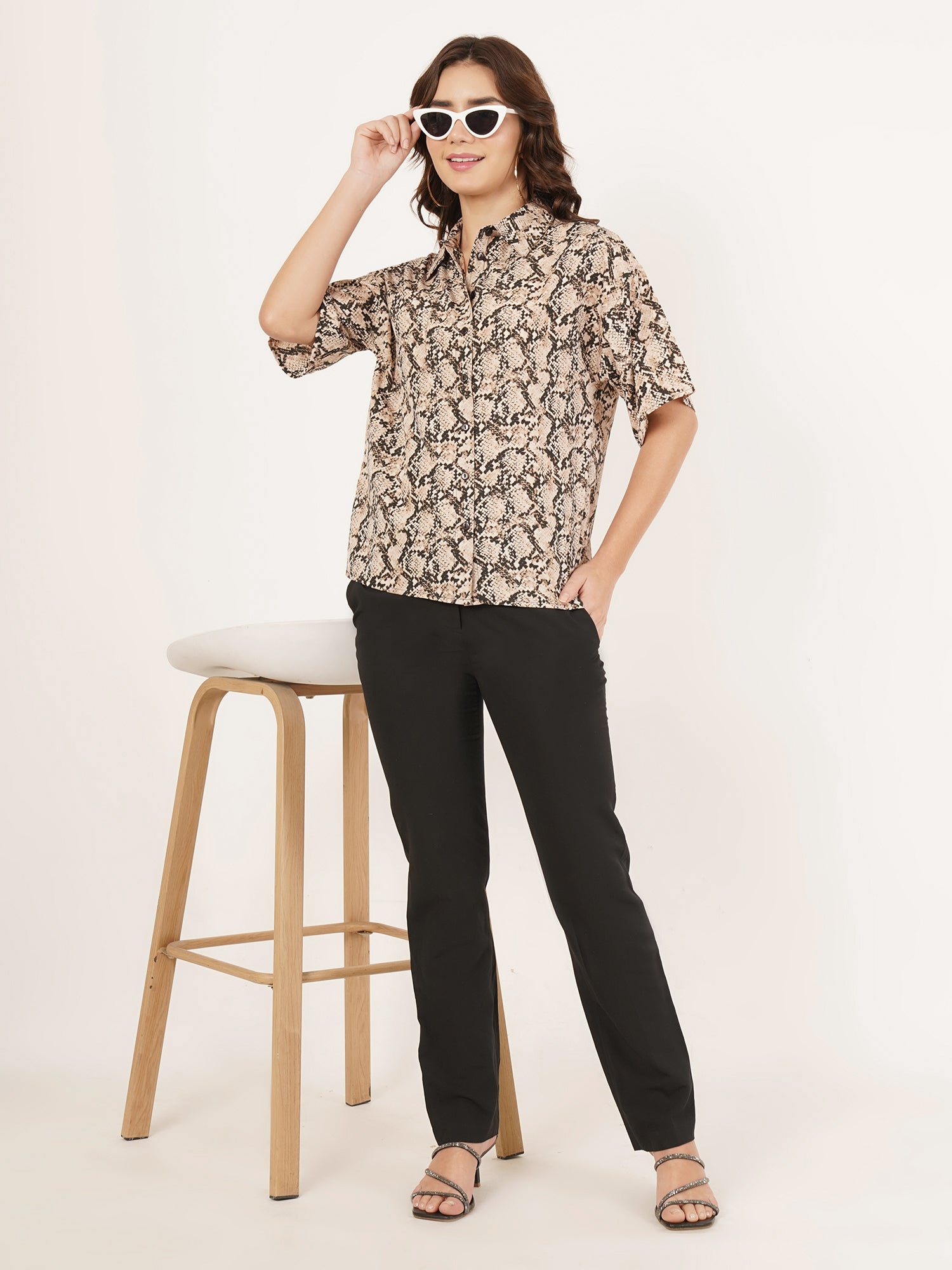 Strike the perfect balance between bold and refined with The Vipere Shirt. Designed in a lightweight premium polyester, this statement button-down features a relaxed silhouette, drop shoulders, and short sleeves for a modern, easygoing fit. The neutral-toned snakeskin print brings a fierce, fashion-forward edge while remaining effortlessly wearable. Whether styled for office glam or casual cool, Vipere pairs beautifully with denim, tailored trousers, or sleek skirts — your new go-to for elevated everyday dressing.
