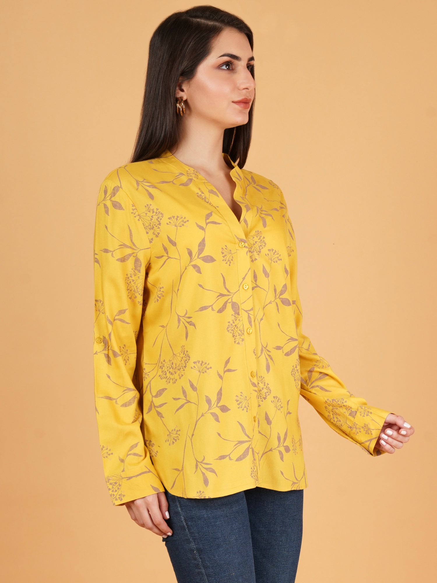 Women Yellow & Pink Mandarin Collar Full Sleeves Oversized Shirt Style Top